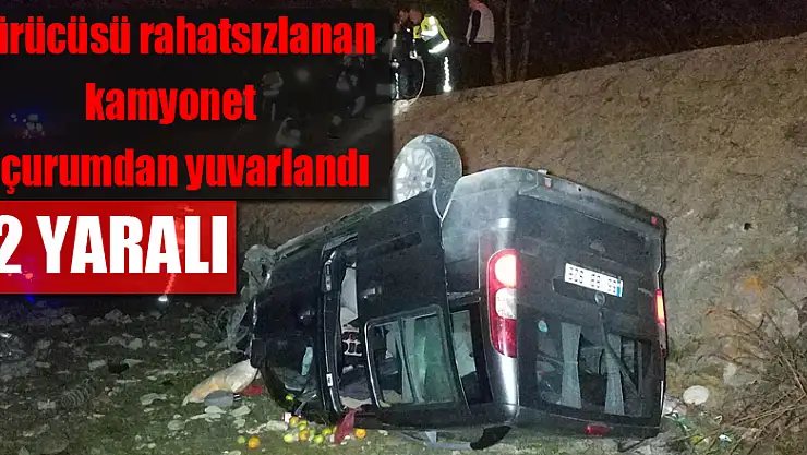 Samsun'da sürücünün direksiyon başında rahatsızlanarak yoldan çıkan panelvan aracın yaklaşık 100 metrelik uçurumdan dereye yuvarlanması sonucu meydana gelen trafik kazasında 2 kişi yaralandı.