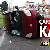 Samsun'da takla atan aracın sürücüsünü emniyet kameri kurtardı