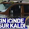 Samsun'da taksici selde aracıyla suyun içinde mahsur kaldı