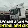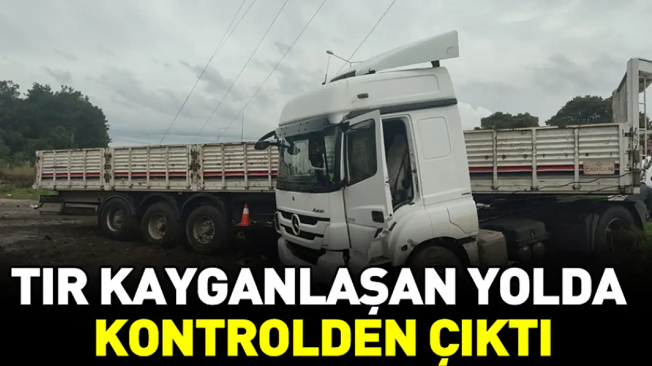 Samsun'da tır kaygan yolda kontrolden çıktı