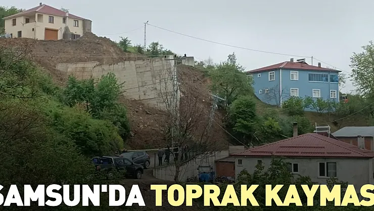 Samsun'un Tekkeköy ilçesinde meydana gelen toprak kayması sonucu bir evin istinat duvarı çöktü.