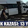 Samsun'da işçileri taşıyan servis minibüsü ile otomobilin çarpışması sonucu meydana gelen trafik kazasında 13 kişi yaralandı.