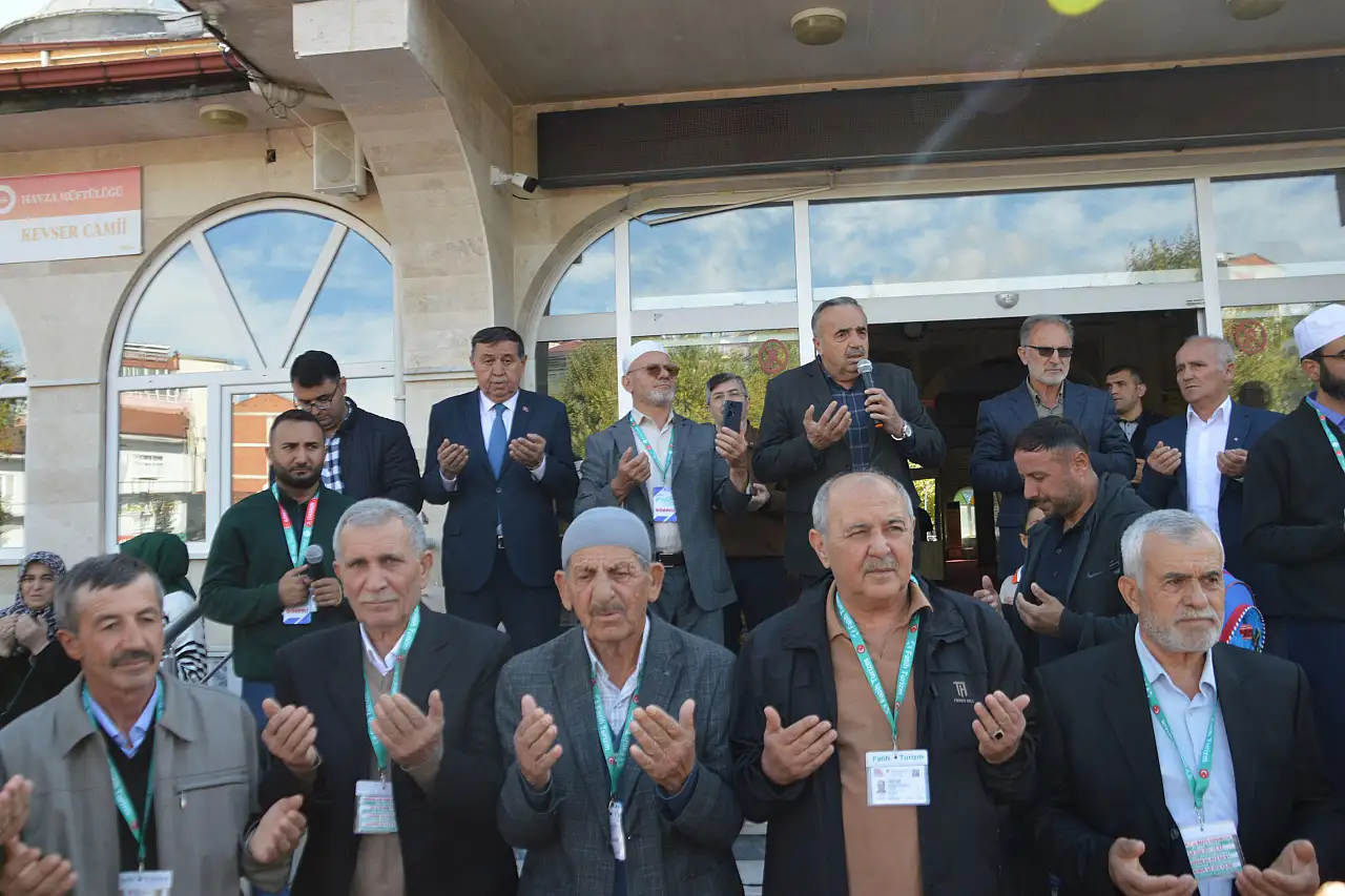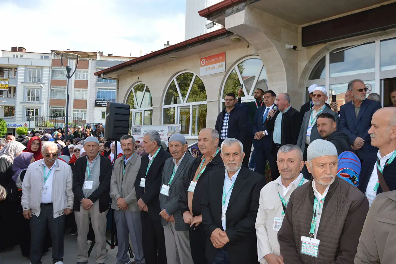 Özel bir firmayla umreye gidecek 60 kişi için Kevser Camisi önünde uğurlama töreni düzenlendi.