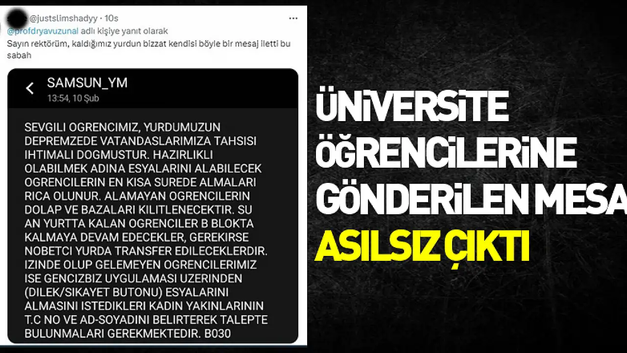 - Samsun'da üniversite öğrencilerine gönderilen 'yurtları boşaltın' mesajı asılsız çıktı