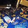 Tırdan savrulan üzüm ve domates kasaları karayoluna saçıldı. Bölge Trafik Şube Müdürlüğü ekipleri yolun araç trafiğine kapanması sonucu ulaşımın sağlanması amacıyla araçların alternatif yollardan gitmelerini sağladı.