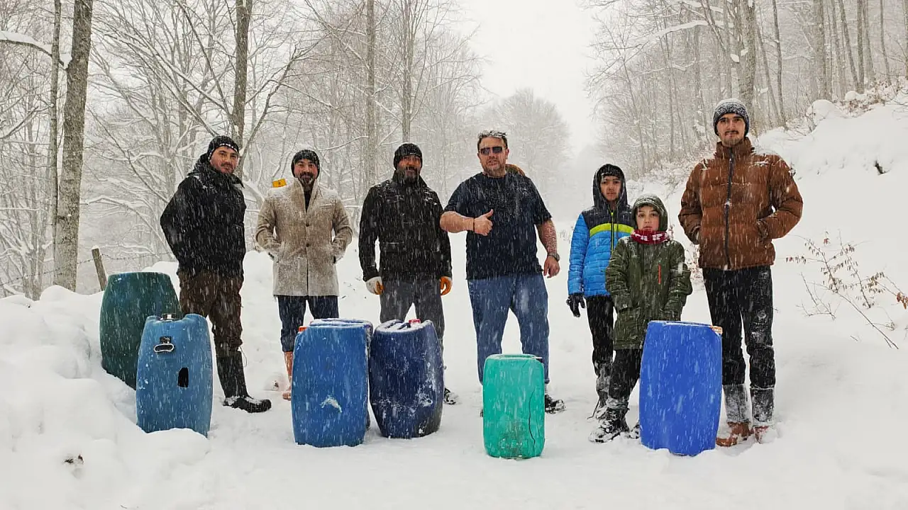 Samsun'da Vatandaşlar bidonlarla karın keyfini çıkardı