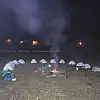 Yakılan ateşin başında şarkılar söyleyen ve oyunlar oynayan öğrenciler, bir gece çadırda kalacaklar.