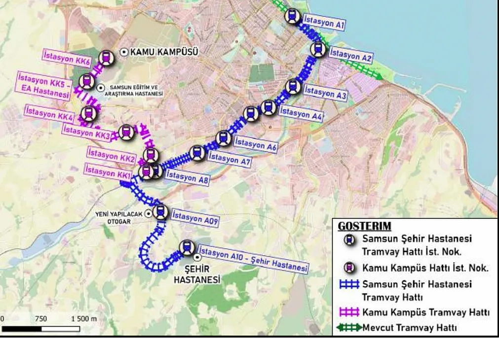 Samsun'da Şehir Hastanesi ve Kamu Kampüsü tramvay hatları için yapılan Çevresel Etki Değerlendirme (ÇED) başvurusunda nihai karar olumlu olarak alındı. Projeye ilişkin planlamalar, durak sayıları, proje bedeli gibi tüm detaylar da ortaya çıktı.