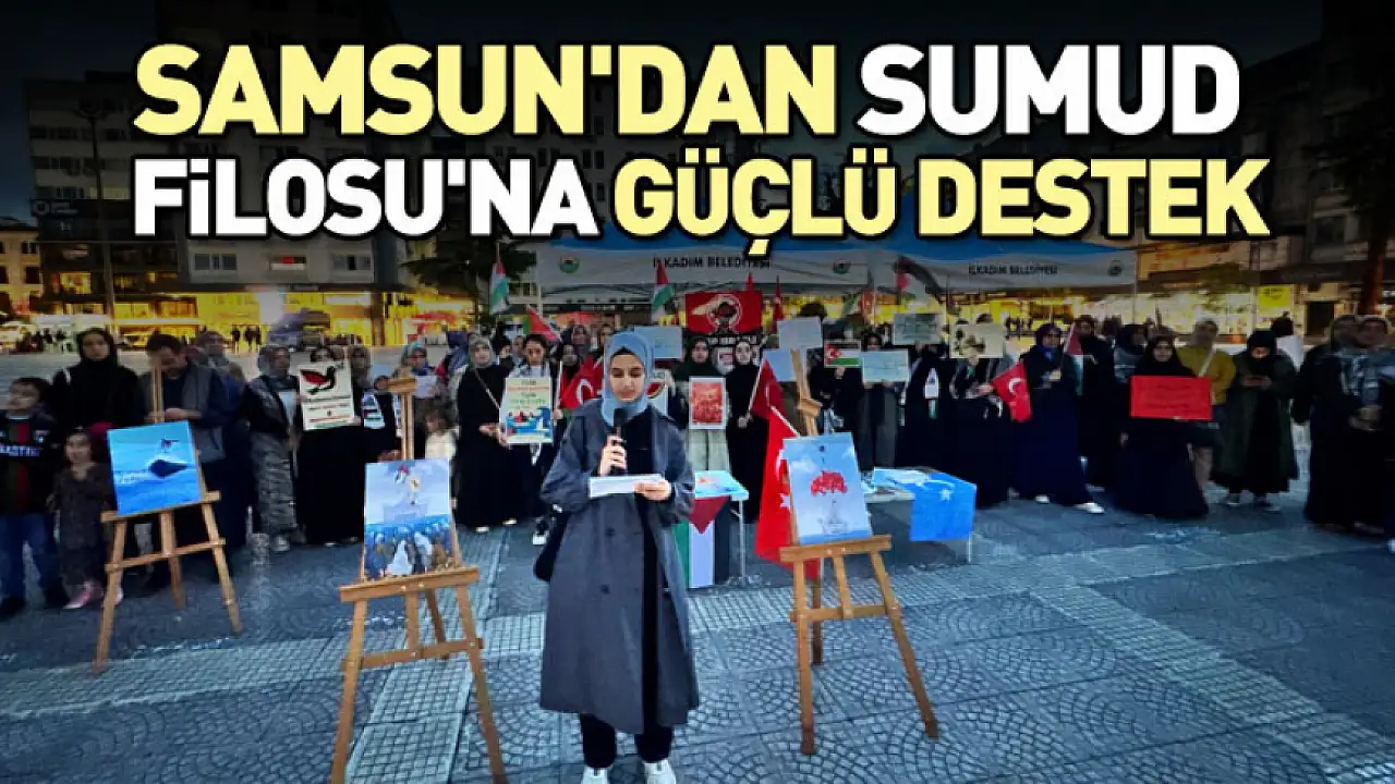 Samsun'da toplanan vatandaşlar, Gazze'ye insani yardım ulaştırmak amacıyla yola çıkan Küresel Sumud Filosu'na destek için Cumhuriyet Meydanı'nda bir araya geldi.