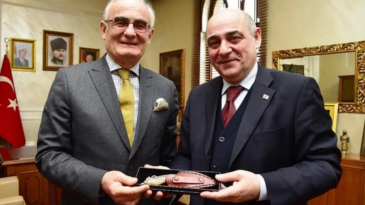Sohbetin ardından Başkonsolos Avtandil Mikatsadze Başkan Yılmaz’a işlemeli bir hançer hediye etti. Başkan Yılmaz’da Mikatsadze’ye el yapımı bir avcı bıçağı hediye ederek ziyaretlerinden dolayı teşekkür etti.