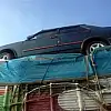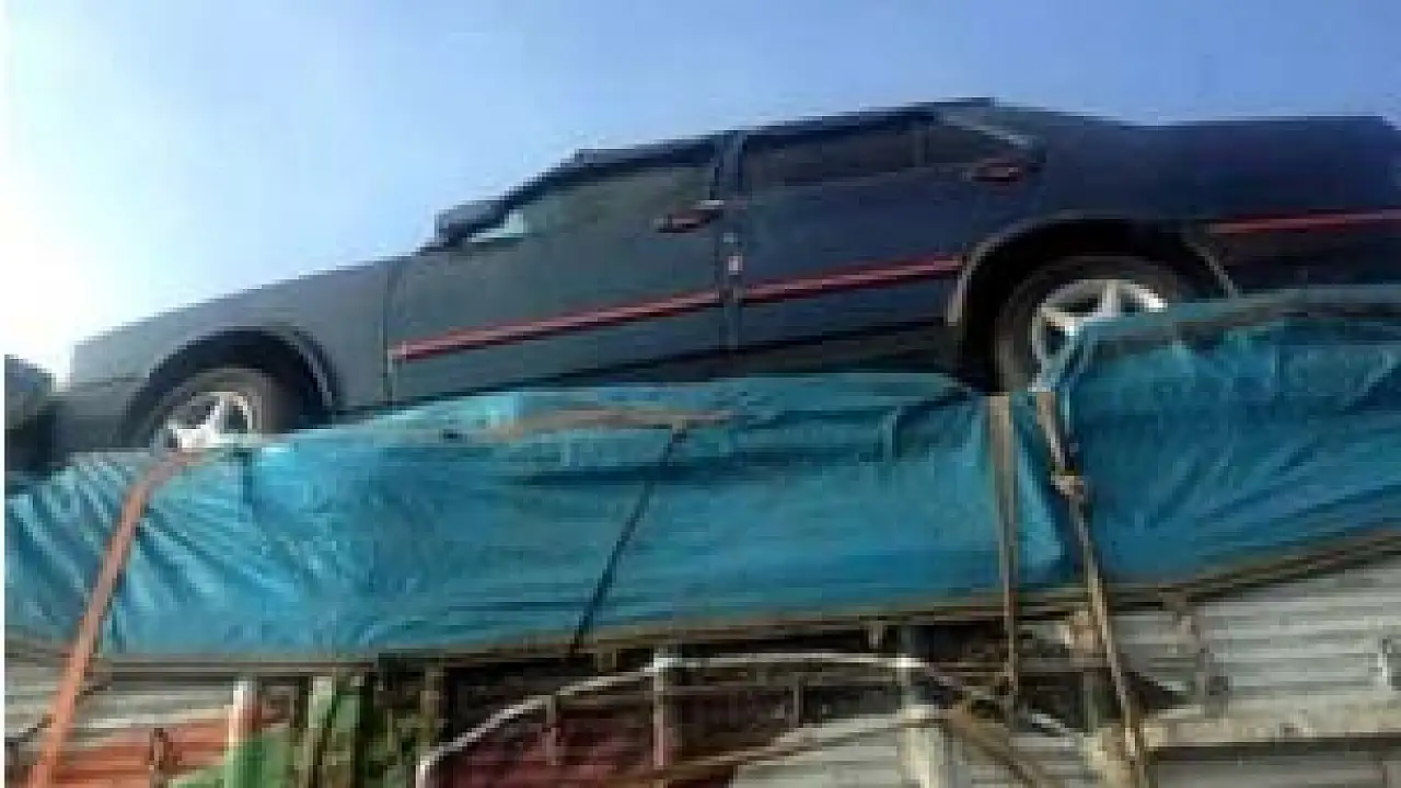 Bolu'dan Samsun istikametine seyreden bir kamyon sürücüsünün kasadaki eşyaların üzerine iple bağlayarak taşıdığı otomobil görenleri şaşkına çevirdi.