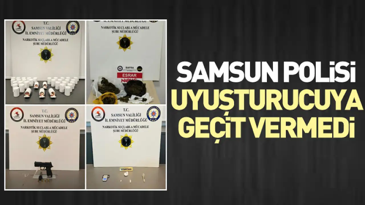 Edinilen bilgiye göre İlkadım, Atakum ve Canik ilçelerinde gerçekleştirilen operasyonlarda 5 şahsın üst, araç ve ikamet aramalarında; 2.130 adet sentetik ecza, 28,29 gram metamfetamin, 163,28 gram esrar, 4,52 gram sentetik kannabinoid, 1 adet esrarlı sigara, 3 kök kenevir bitkisi, 1 adet hassas terazi, 2 adet uyuşturucu kullanım aparatı, 2 adet ruhsatsız tabanca, 6 adet tabanca fişeği ele geçirildi.