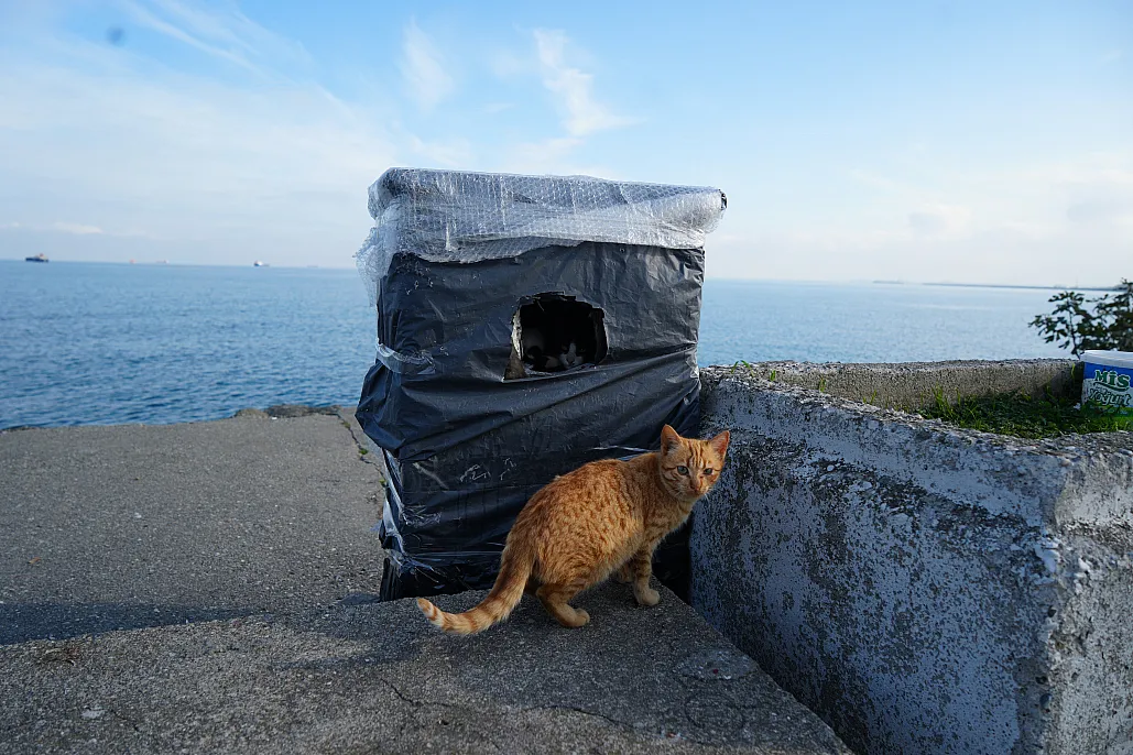 Samsun'un İlkadım ilçesinde sahil boyunca bulunan kayalıklara yerleştirilen kedi yuvaları, soğuk havalarda sokak hayvanları için güvenli bir sığınak oldu.