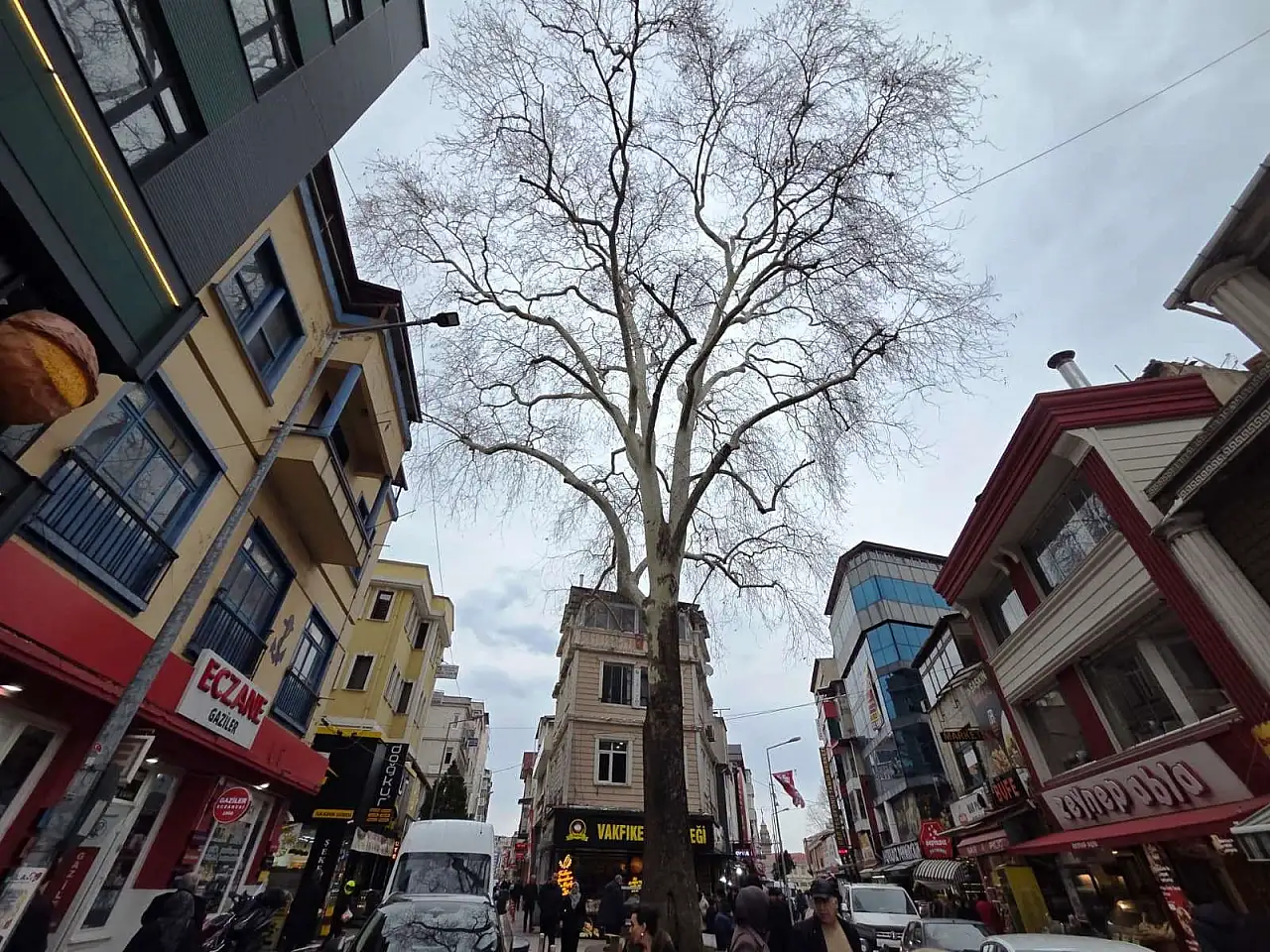 Yaz aylarında vatandaşlara serin bir gölgelik sunan anıt çınar, kış aylarında yapraklarını dökmesine rağmen ihtişamlı görüntüsüyle dikkat çekmeye devam ediyor.