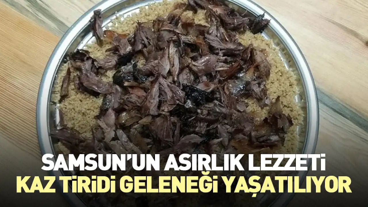 Geçmişte Samsun’un Bafra, Alaçam ve Yakakent gibi ilçelerinde düğün, bayram veya önemli misafir sofralarının baş yemeği Kaz Tiridi olurdu. Kış aylarında köylerde kesilen kazların eti özenle haşlanır, altına bayat ekmek dilimleri yerleştirilir ve üzerine bolca kaz suyu gezdirilirdi. En son kızgın tereyağıyla taçlandırılan bu yemek, kalabalık sofralarda paylaşılırdı.