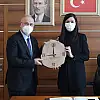 Gösterilen misafirperverlik için şükranlarını bildiren Rektör Ünal, ziyaret sonunda Çiğdem Karaaslan’a, adının yazılı olduğu OMÜ işlemeli duvar saatini hediye etti.