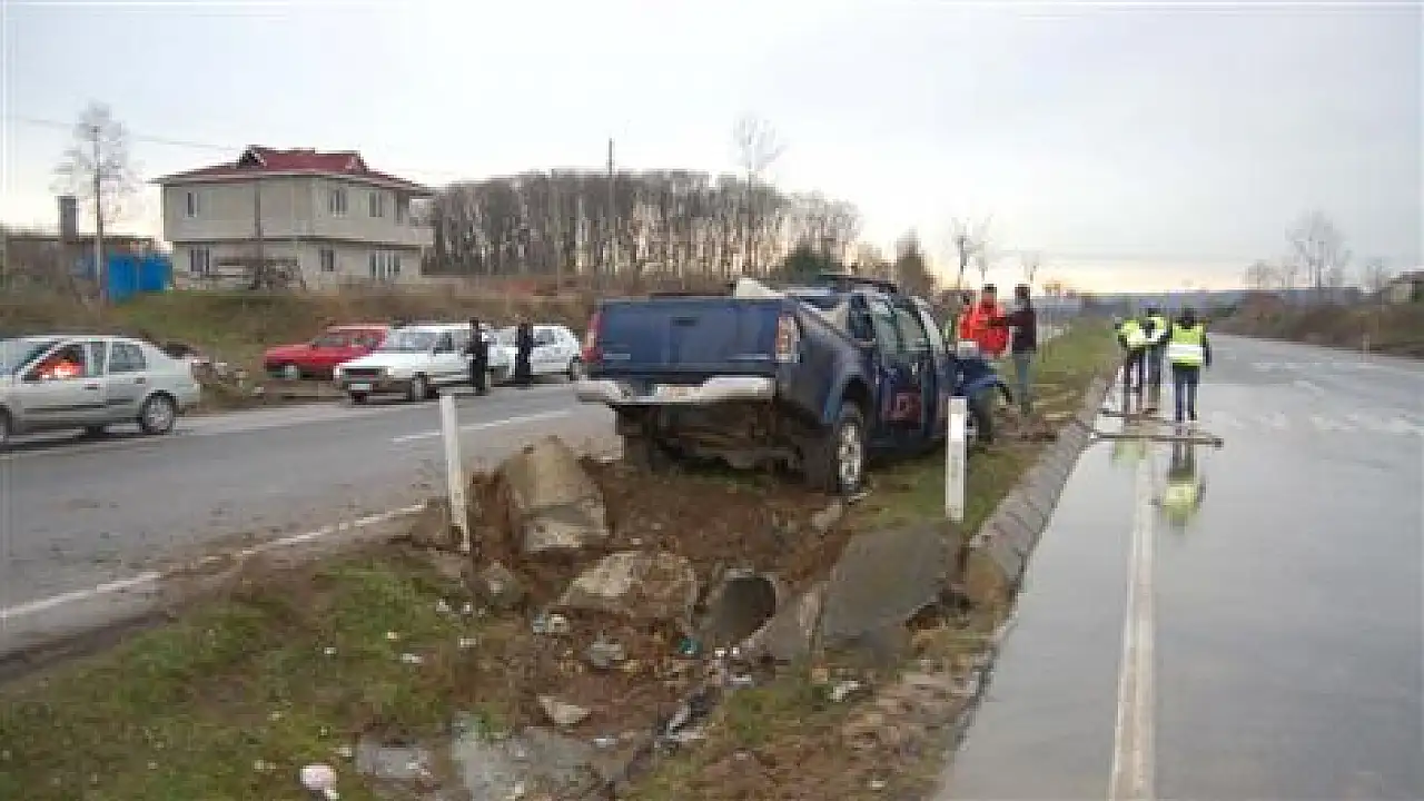 Edinilen bilgiye göre, saat 08.00 sıralarında Akçay'da kurulu doğalgaz çevrim santraline çalışmaya giden Fırat Çelik'in (37) kullandığı 72 DE 283 plakalı pikap, sürücünün direksiyon hakimiyetini kaybetmesi sonucu orta refüje girdi. Kazada Barış Tekin (25) ve Yasin Yiğit (37) ile şoför Fırat Çelik araçta sıkıştı. Olay yerine çağrılan Ünye Belediyesi İtfaiye ekipleri ile Terme Belediyesi İtfaiye ekiplerince yaralılar araçtan çıkarılarak 112 ambulansıyla Terme Devlet Hastanesi'ne kaldırıldı. Burada yapılan ilk müdahalenin ardından Fırat Çelik, Samsun'a sevk edildi. Kazayla ilgili soruşturma başlatıldı.