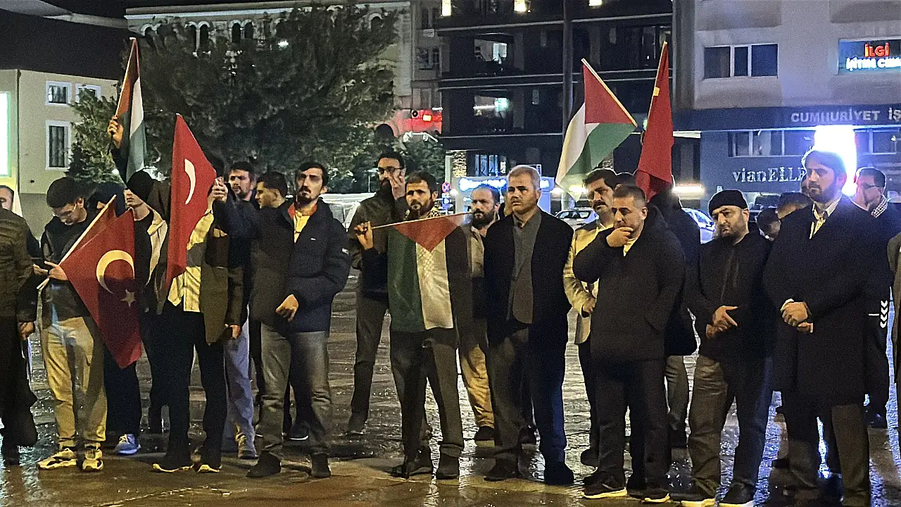 Ellerinde Filistin bayrakları taşıyan vatandaşlar, sloganlar atarak İsrail'i protesto etti.