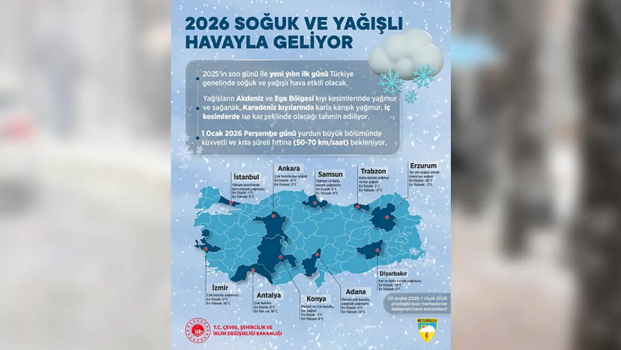 Meteoroloji, 1 Ocak 2026 Perşembe günü Samsun dahil Karadeniz’in büyük bölümünde 50–70 kilometre/saat hızında kısa süreli kuvvetli rüzgâr ve fırtına beklendiğini duyurdu. Vatandaşların çatı uçması, ağaç devrilmesi ve deniz ulaşımında aksamalar gibi olumsuzluklara karşı dikkatli olması istendi.
