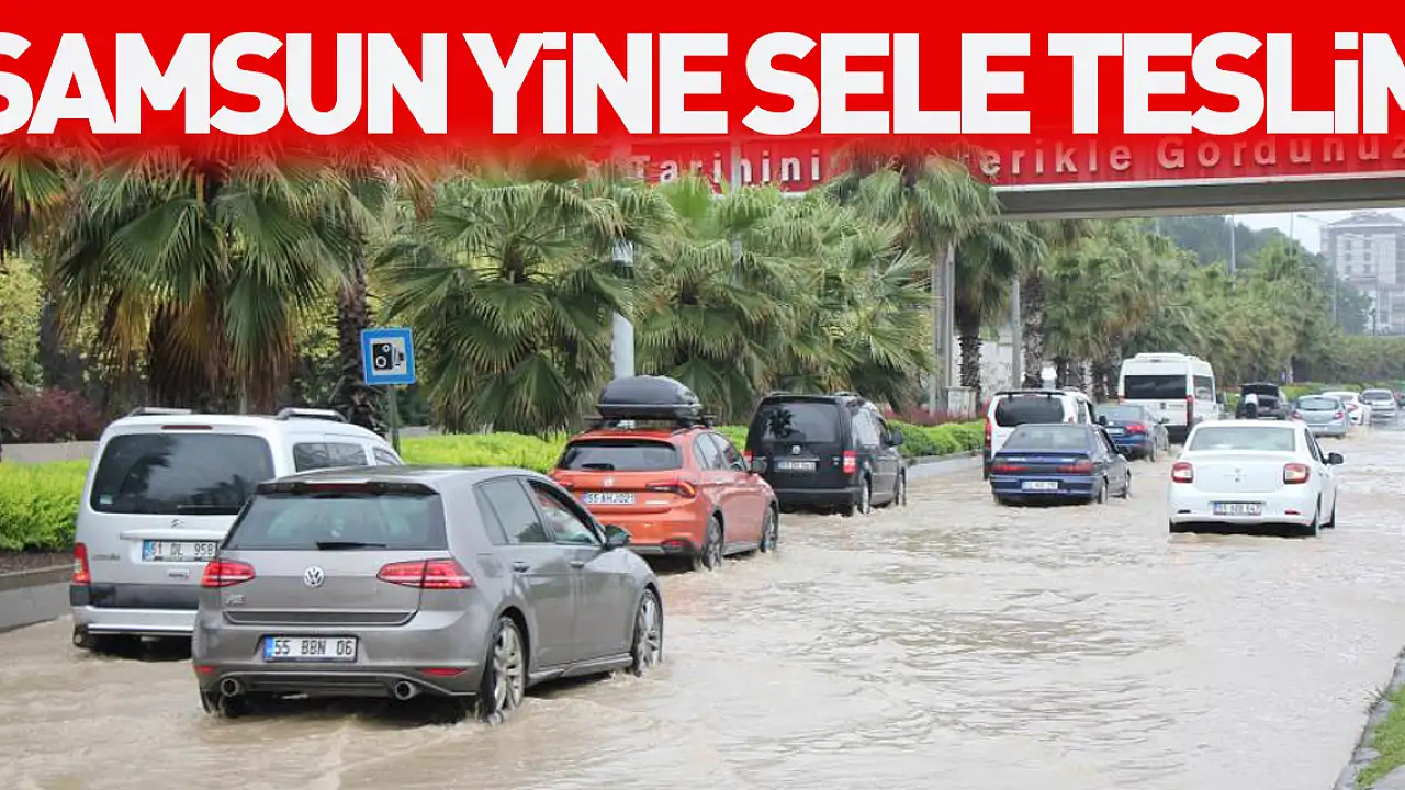 Samsun'da etkili olan sağanak sele dönüştü. Suyla kaplanan yol, cadde ve sokaklarda birçok araç yolda kalıp arızalandı.