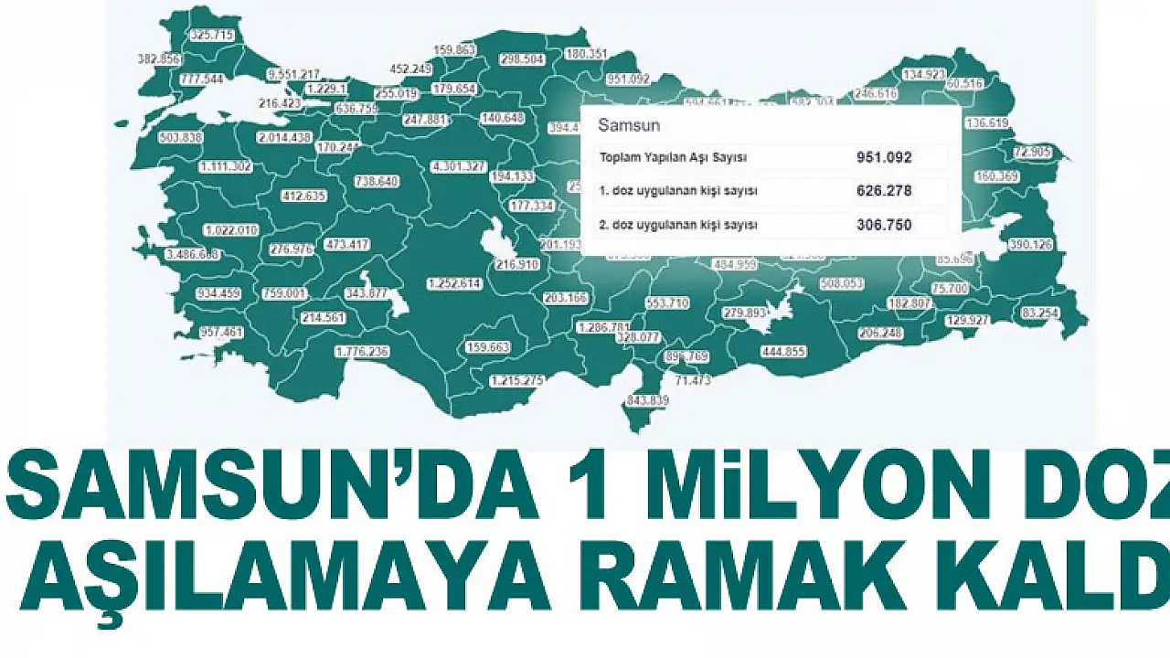 Samsun'da bu zamana kadar 951 bin 92 doz aşı yapılırken, 306 bin 750 kişinin ise 2 doz aşılama süreci tamamlandı.