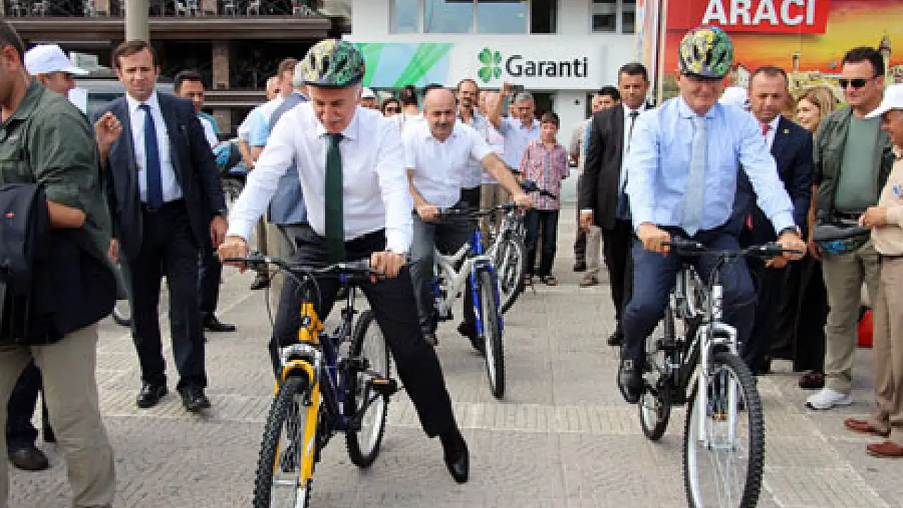Törende Samsun Valisi İbrahim Şahin ve Samsun Büyükşehir Belediye Başkanı Yusuf Ziya Yılmaz bir süre bisiklet sürdü.