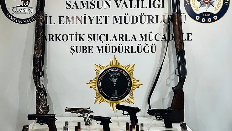 Samsun'da polis tarafından 5 adet tabanca, 2 tüfek, fişek ve kartuş ele geçirilirken, olayla ilgili 2 kişi gözaltına alındı.