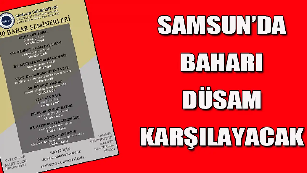Samsun Üniversitesi Düşünce ve Sanat Çalışmaları Uygulama ve Araştırma Merkezi (DÜSAM), 2020-Bahar dönemi seminerleri ile baharı karşılayacak.