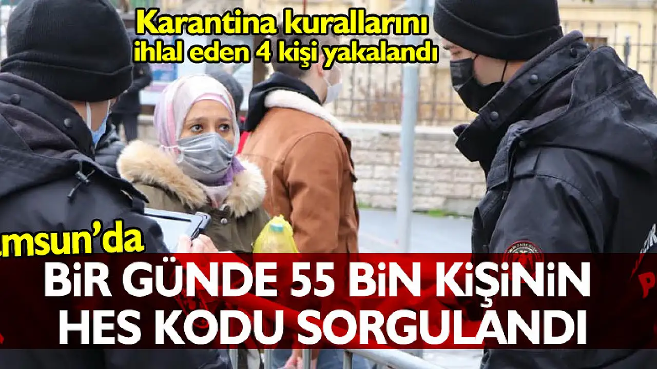 Samsun'da bir günde 55 bin 553 kişinin HES kodu sorgulanırken, karantina tedbirlerini ihlal eden 4 şahıs hakkında işlem yapıldı.
