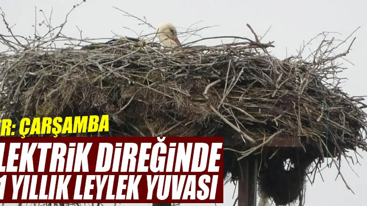 Samsun'un Çarşamba ilçesinde elektrik direği üzerindeki 31 yıllık leylek yuvası, bu yıl da misafirlerini ağırlıyor.