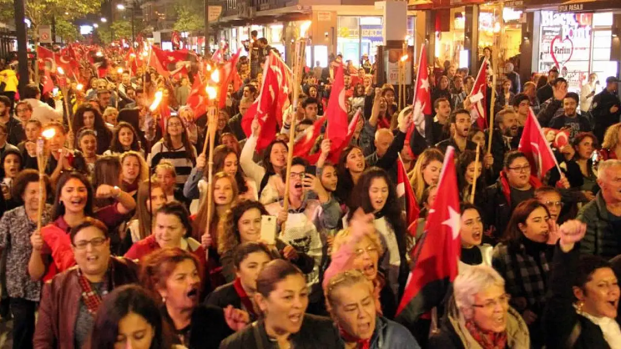 Samsun'da 29 Ekim Cumhuriyet Bayramı nedeniyle Atatürkçü Düşünce Derneği tarafından Fener Alayı yürüyüşü düzenlendi