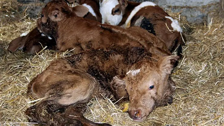 Samsun'un Bafra ilçesinde montofon ırkı bir inek dördüz doğurdu