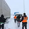 Samsun'da yoğun kar yağışında araçlarıyla yolda kalanlara kumanya dağıtımı yapılıyor.