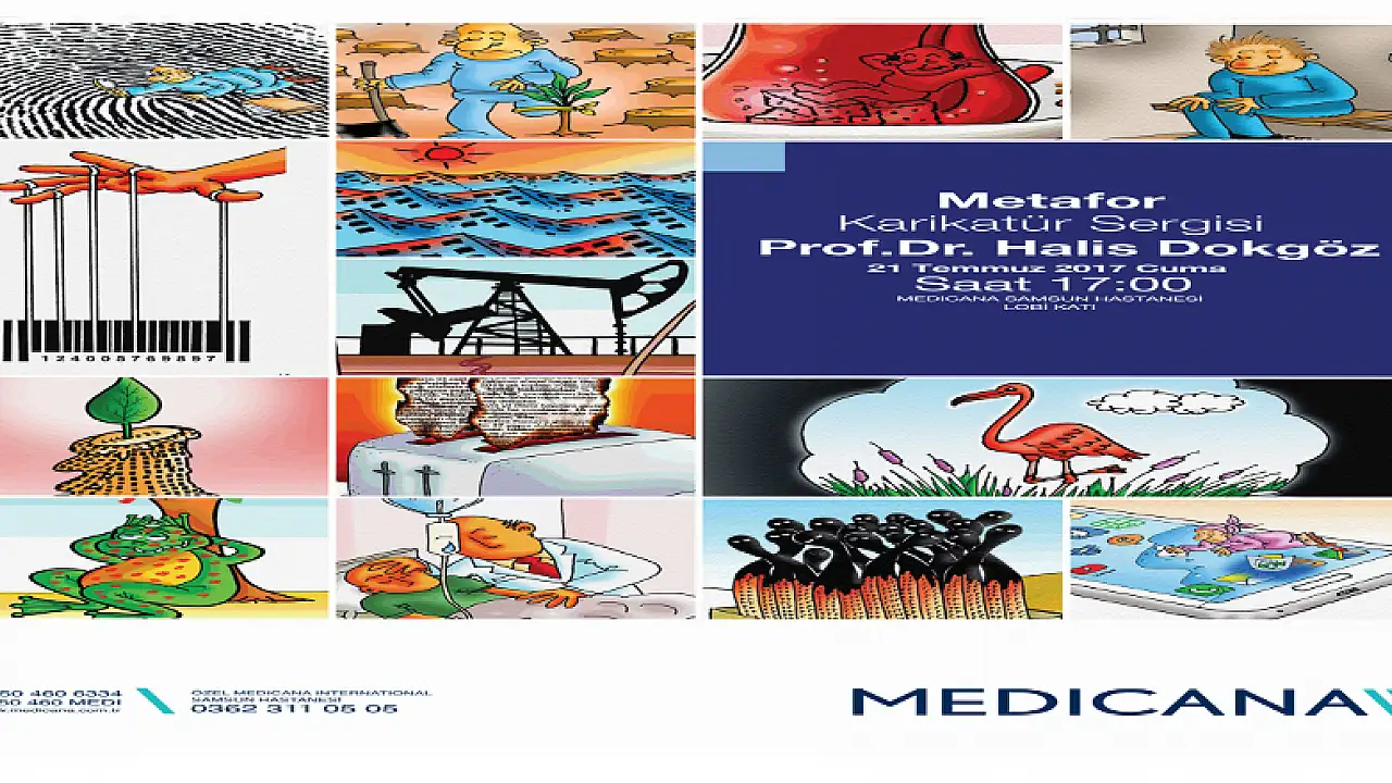 karikatür Sanatçısı Prof. Dr. Halis Dokgöz’ün karikatürlerinden oluşan "Metafor Karikatür Sergisi" 21 Temmuz Cuma günü Medicana Samsun Hastanesi Lobi Katında saat 17.00'de açılacak.