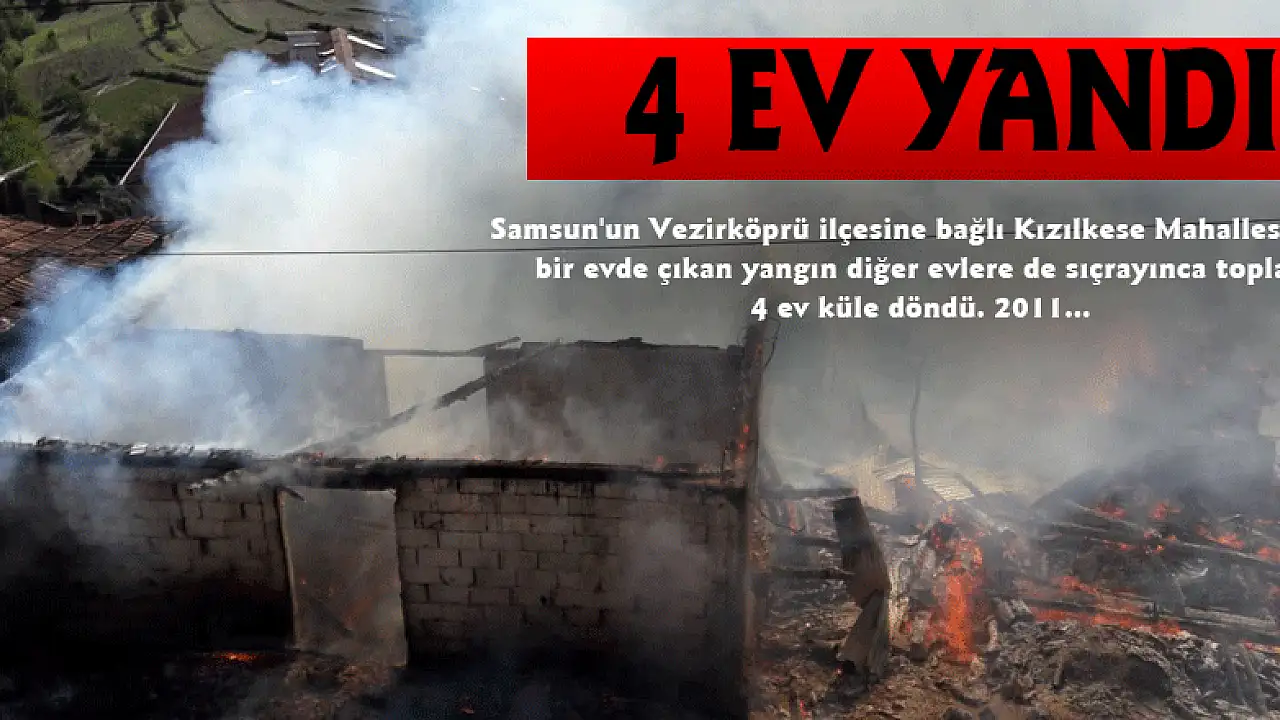 Samsun'un Vezirköprü ilçesine bağlı Kızılkese Mahallesi'nde bir evde çıkan yangın diğer evlere de sıçrayınca toplam 4 ev küle döndü. 2011 yılında aynı mahallede çıkan yangında 24 ev yanmıştı