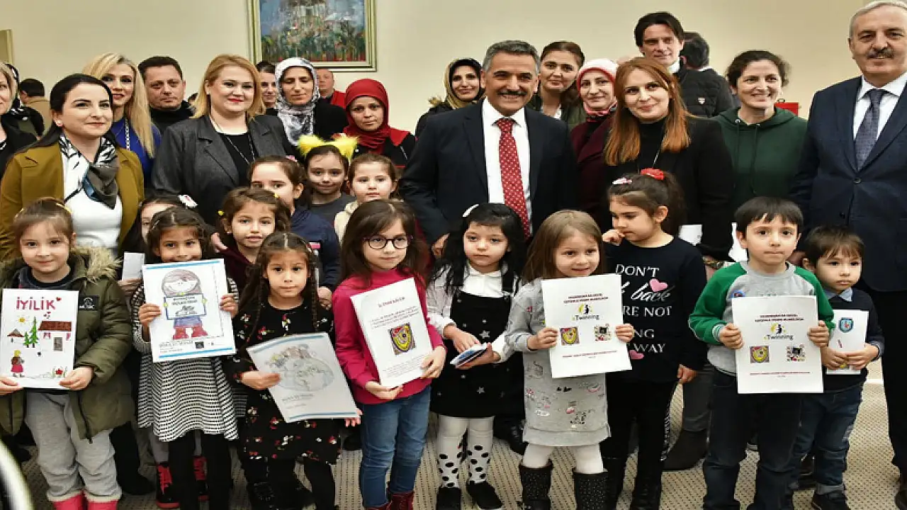 Samsun'da 'Yazamasam da hayal gücümle yazar olabilirim' adlı e-Twinning projesi kapsamında 3 okuldan ana sınıfı öğrencileri anı ve hayallerini kitaba dönüştürdü.