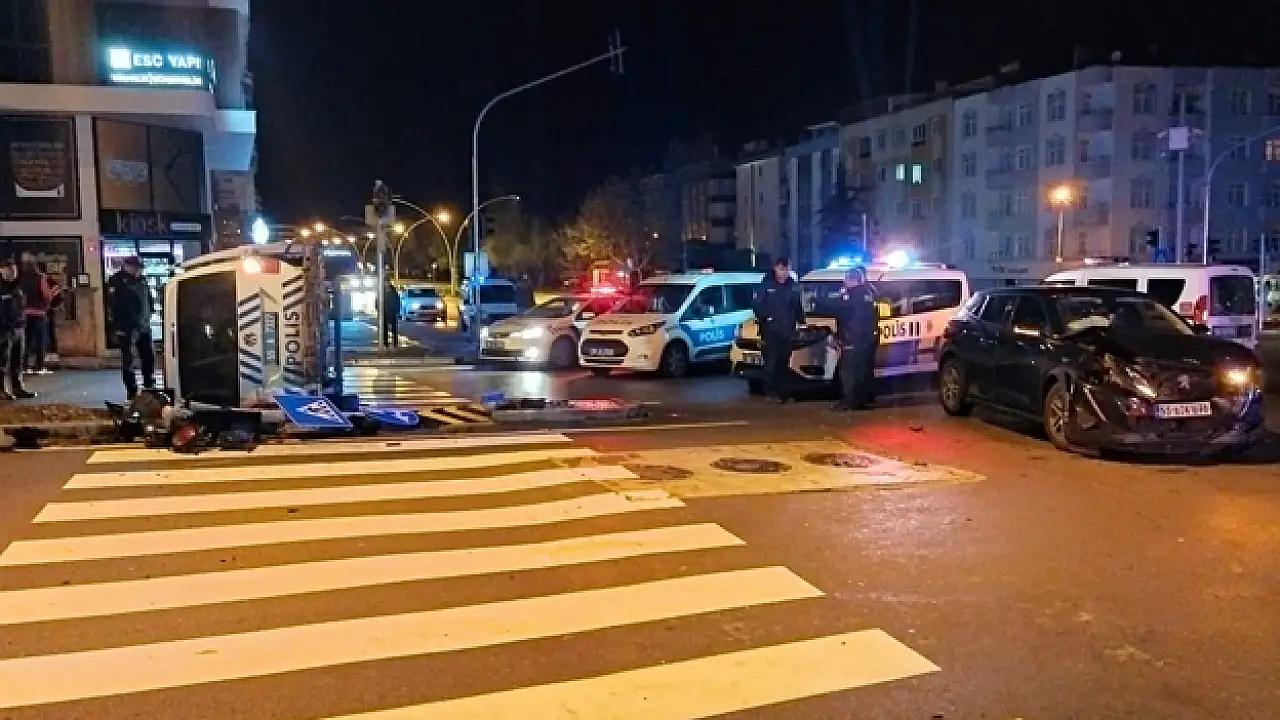 Kazada yan yatan polis aracının sürücüsü ile polis memuru A.İ. yaralandı.