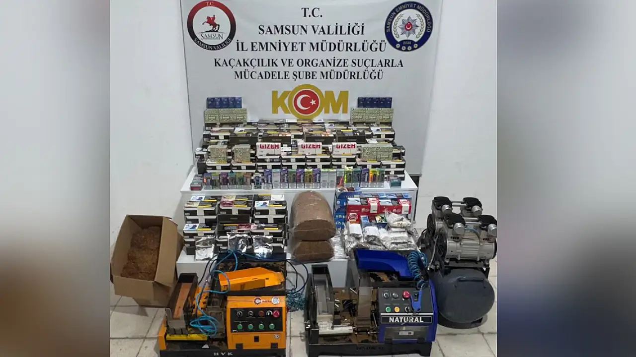 Alınan bilgiye göre, İl Emniyet Müdürlüğü Kaçakçılık ve Organize Suçlarla Mücadele (KOM) ile Narkotik Suçlarla Mücadele (NSM) Şube Müdürlüklerince, kaçakçılıkla mücadele kapsamında Atakum ve İlkadım ilçelerinde operasyon düzenledi. Yapılan çalışmalarda, 2 adet otomatik elektrikli sigara sarma makinesi, 1 adet kompresör, 48 bin 500 adet makaron sigara, 24 bin 800 adet kaçak makaron, 14 bin 160 adet kaçak sigara sarma kağıdı, 40 paket gümrük kaçağı sigara, 23 adet gümrük kaçağı elektronik sigara, 25 kilo kaçak tütün ve 1,5 kilo gümrük kaçağı nargile tütünü ele geçirildi. Operasyon kapsamında 4 şahıs yakalanarak haklarında adli işlem başlatıldı.