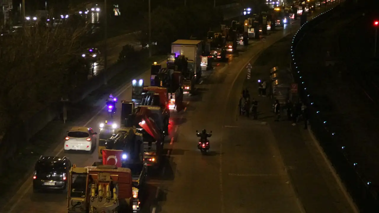 Samsun'da, Bahar Kalkanı Harekatı'na destek olmak için vinç ve çekicilerle konvoy düzenlendi.