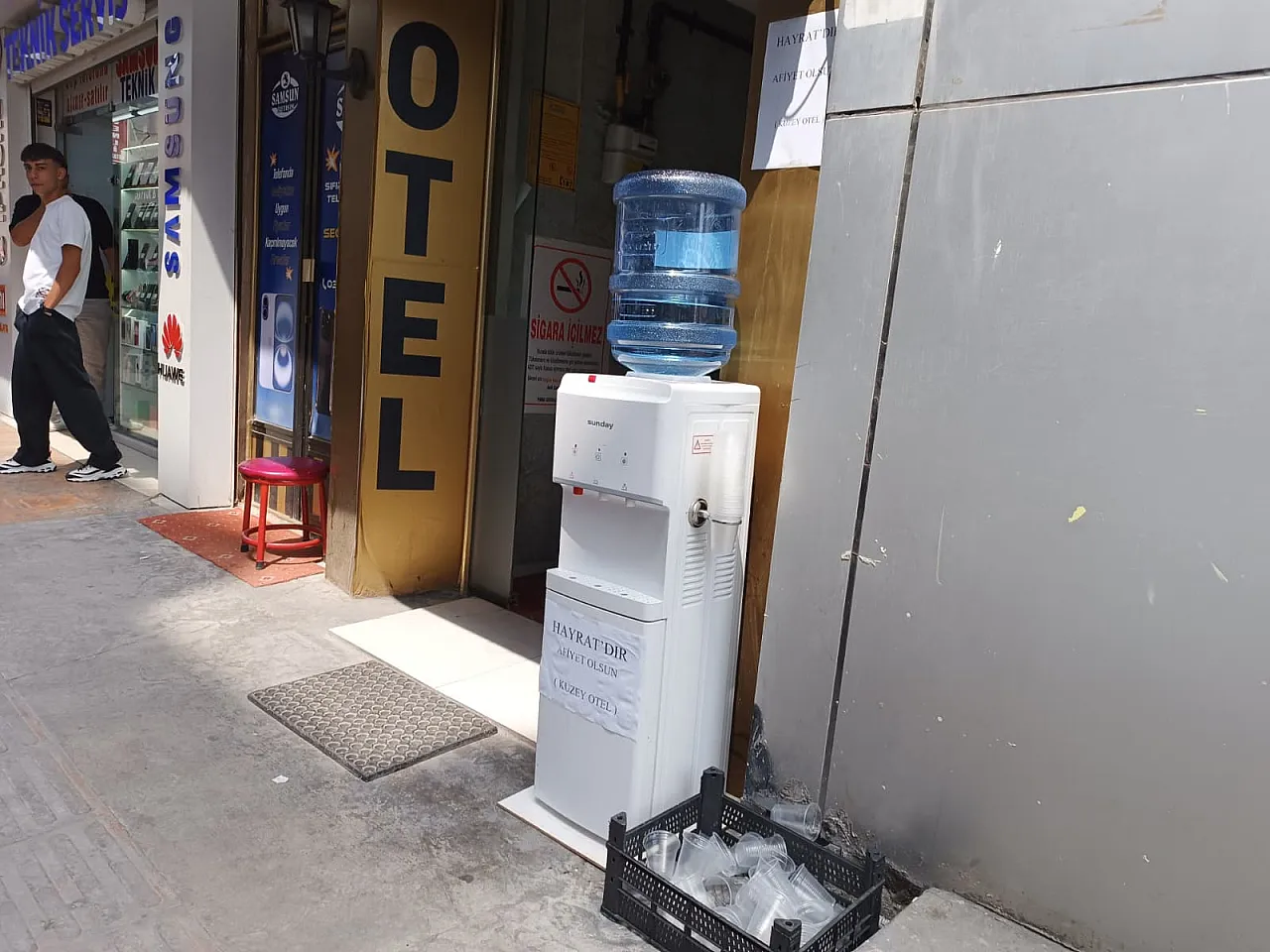 Otel işletme sahibi Yıldırım Sağır, mikrofonumuza yaptığı açıklamada, “Hava sıcaklıkları aşırı arttı. Uzmanlar sürekli uyarılarda bulunuyor. Biz de buraya hem hayır amaçlı hem de bunalan vatandaşlara yardımcı olmak için böyle bir şey yaptık. Ölülerimize, anne babalarımıza rahmet okusunlar, bir bardak suyumuzu içsinler istedik. Diğer esnaf arkadaşlarıma da bu tarz bir şey yapmalarını tavsiye ediyorum.” dedi.