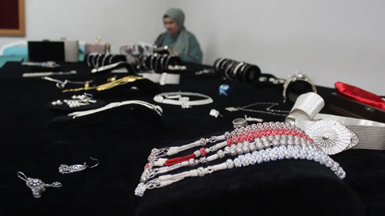 Terme Halk Eğitimi Merkezinde eğitim alan 15 kadın kursiyer, el işçiliğiyle altın ve gümüşten tespih, küpe, saat, bileklik gibi takılar yapıp satarak kazanç sağlıyor.
