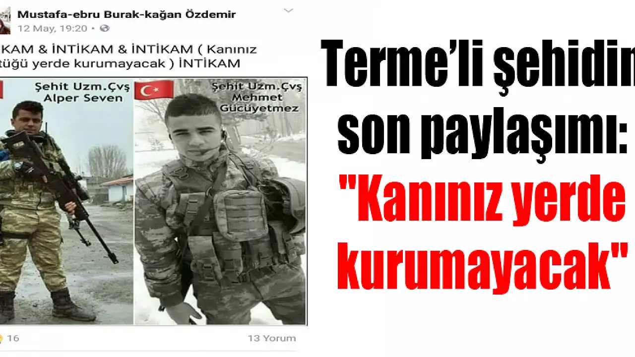 - Samsunlu şehidin son paylaşımı: 'Kanınız yerde kurumayacak'