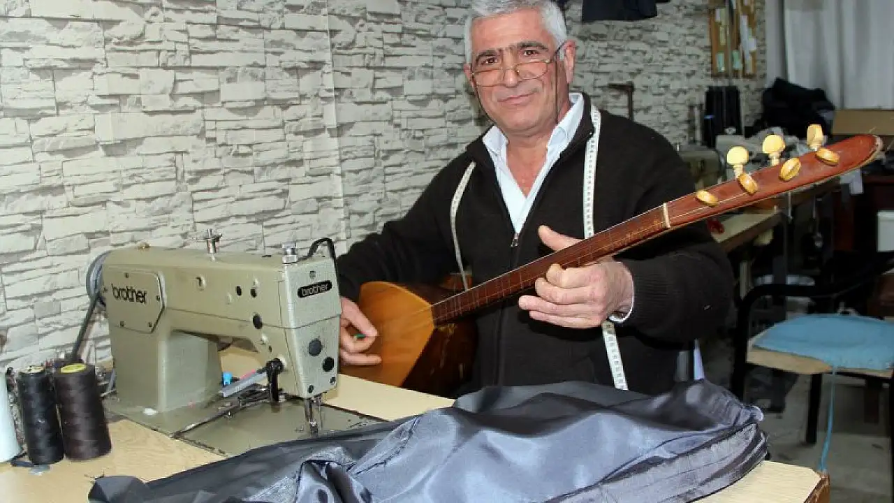 Samsun'da 40 yıldır terzilik yapan Bilal Katkıcı (52), aynı anda hem saz çalıyor hem de dikiş işlemlerini yapıyor