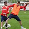 Kırmızı-beyazlı oyuncular, koşu ve kısa pas çalışmasının ardından yarı sahada çift kale maç yaptı.