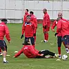 Antrenman öncesinde birbirleri ile şakalaşan futbolcular neşeli tavırları ile dikkat çekerken, düz koşu ve kondisyon çalışmalarının yapıldığı antrenmanda toplu çalışmanın ardından futbolcular çift kale maç yaptı. Kaleci Ertuğrul ise fizyoterapist eşliğinde eldiven takarak topla çalışmaya başladı. İHA
