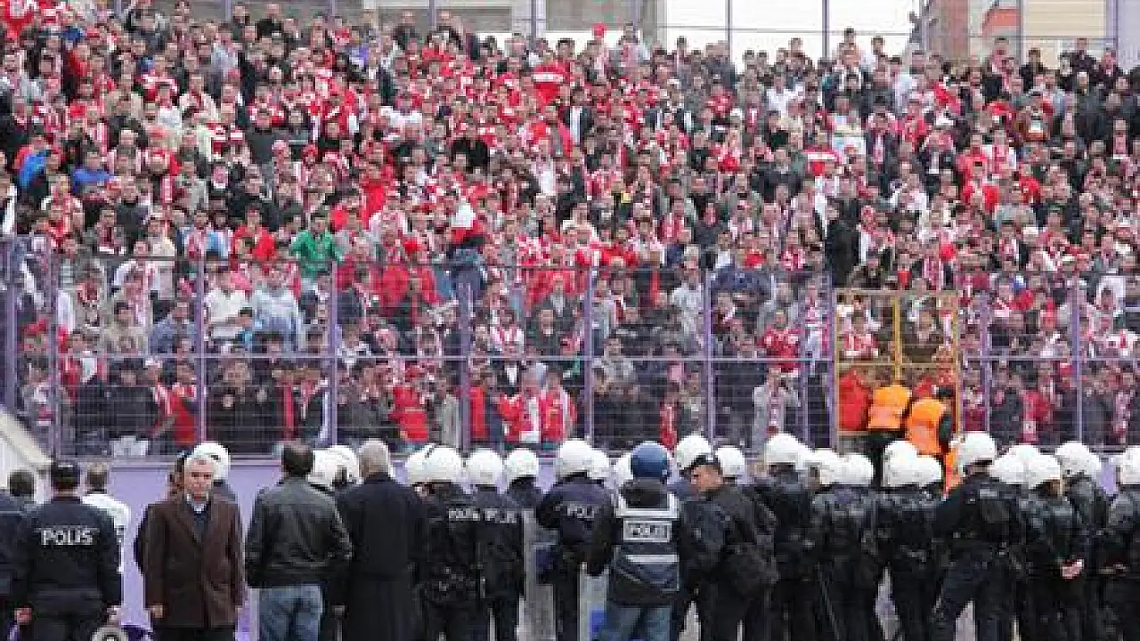 Stadın karşısındaki Irmak Polis Merkezi'nin önündeki otobüsü taşlamak isteyen taraftarlara polis müdahale etti.