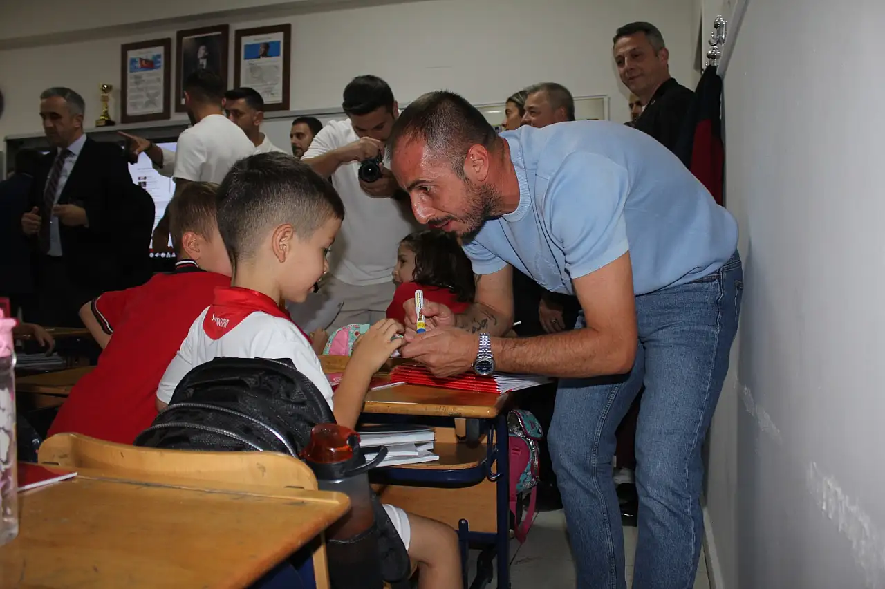 Etkinlikte, Samsunsporlu futbolcular Zeki Yavru, Soner Aydoğdu, Yunus Emre Çift ve Rick van Drongelen minik öğrencilerle bir araya geldi. Çocuklarla fotoğraflar çektiren futbolcular, defter ve kalemin yanı sıra çam fidanı da hediye etti.