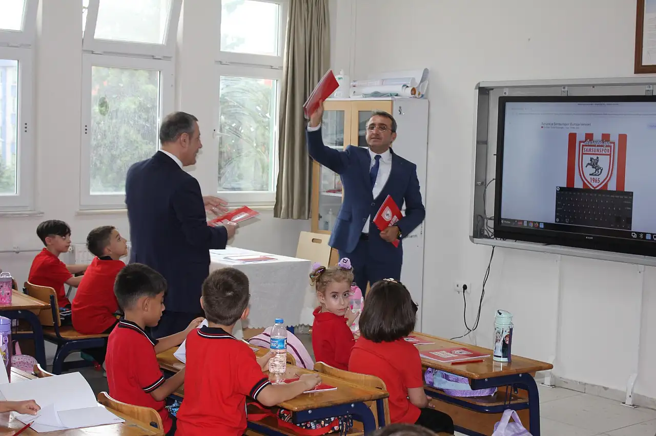 Samsunspor Kulübü, 'Bu Şehrin Çocukları Samsunsporludur' temasıyla düzenlediği etkinlikte, 1. sınıfa başlayan öğrencilere kalem ve defter hediye etti.