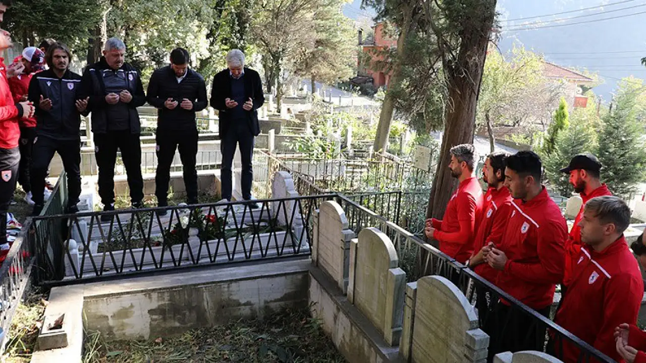 Zonguldak Kömürspor maçı için Zonguldak'a gelen Samsunspor kafilesi otele yerleşmeden ilk olarak trafik kazasında kaybettikleri Samsunsporlu Zonguldaklı futbolcu Muzaffer Badalıoğlu'nun mezarını ziyaret etti