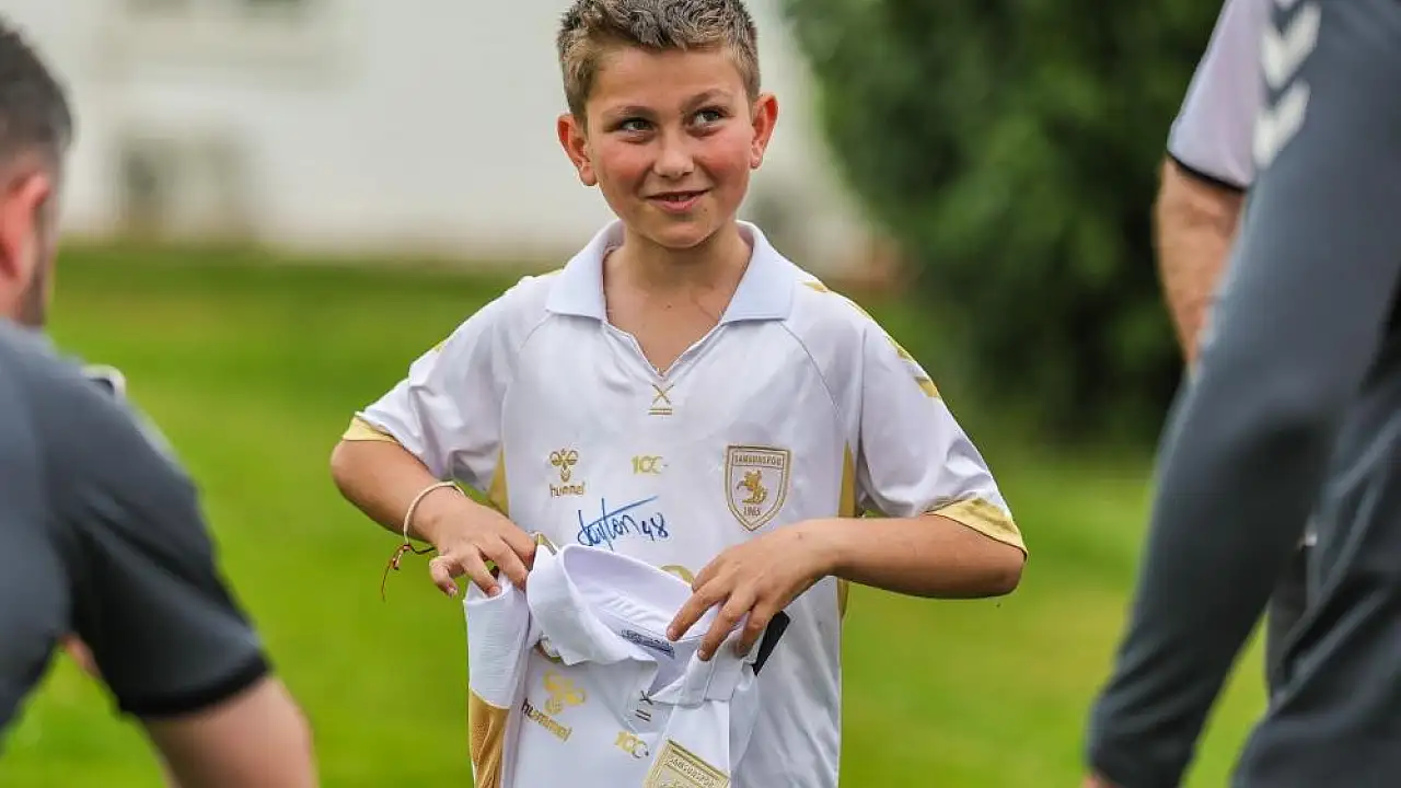 Samsunspor, Mouandilmadji'nin son saniyelerde direkten dönen topu sonrası tribünde gözyaşına boğulan minik taraftar Eren'i tesislerde teselli etti.